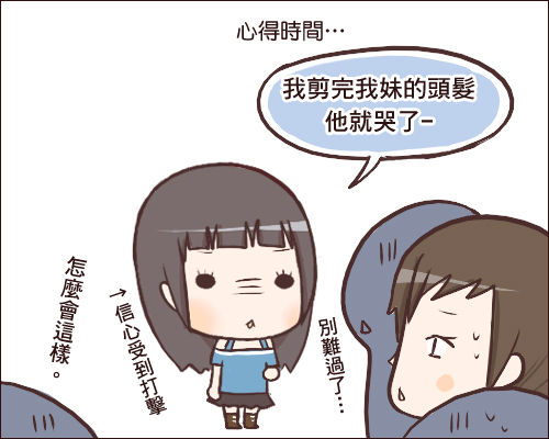之前他把我層次剪太短只說了:「誰叫你頭髮都打結 -_- ←這樣的表情」