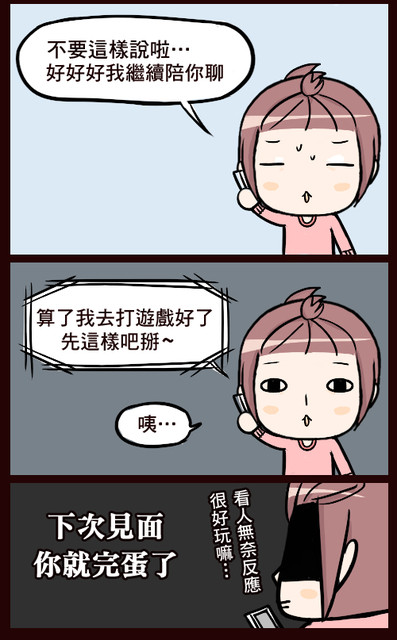 讓他知道這種感覺~~果然他也無奈的回覆「別鬧了」