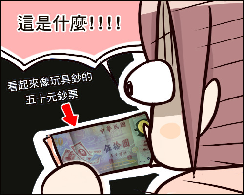 當下看到那張像是玩具鈔的50元鈔票真的臉都垮下來了