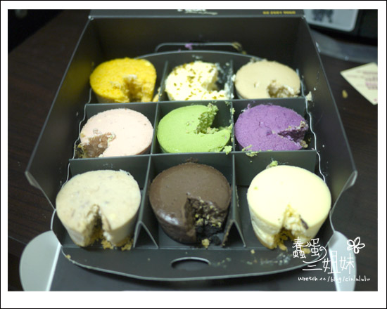 九種口味分別為乳酪、咖啡、抹茶、檸檬原味起司