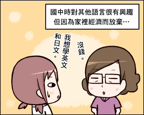 國中時為了看懂日文漫畫和英文介面遊戲想學語言,但家中經濟不准