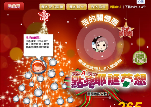 每有一個人參與此活動,許願聖誕樹就會長高些