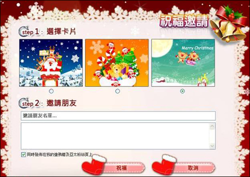 就會出現賀卡來讓你邀請更多好友來加入這個活動唷