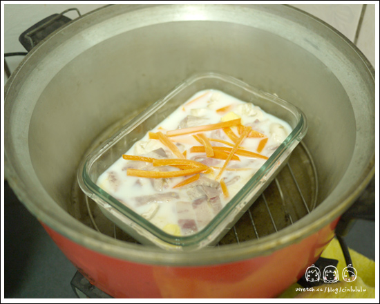 ★放入電鍋,外鍋就一杯水開始蒸熟