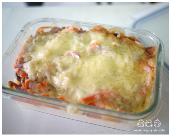鏘鏘!奶油菇培根焗烤燉飯就完成了