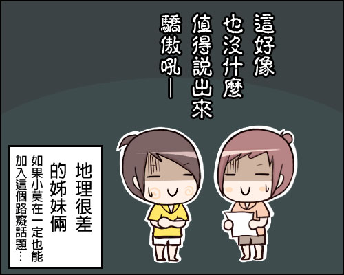 :我怎麼可能知道什麼位置在哪裡呀!嗯...........我們三姊妹的地理真的不是普通的爛呀........(掩面)