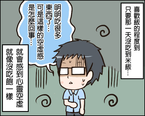 不過不至於說一天沒吃到米飯就會覺得空虛、寂寞、覺得冷