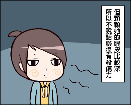 但顆顆的超深眼皮+下垂唇就會讓人感覺像是瞪人。